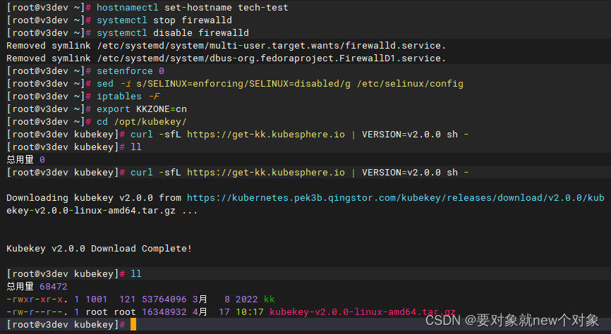 执行完后需要检查下是否有kk和kubekey的压缩包,这截图中就是网络原因执行了这命令可能并没有下载成功。