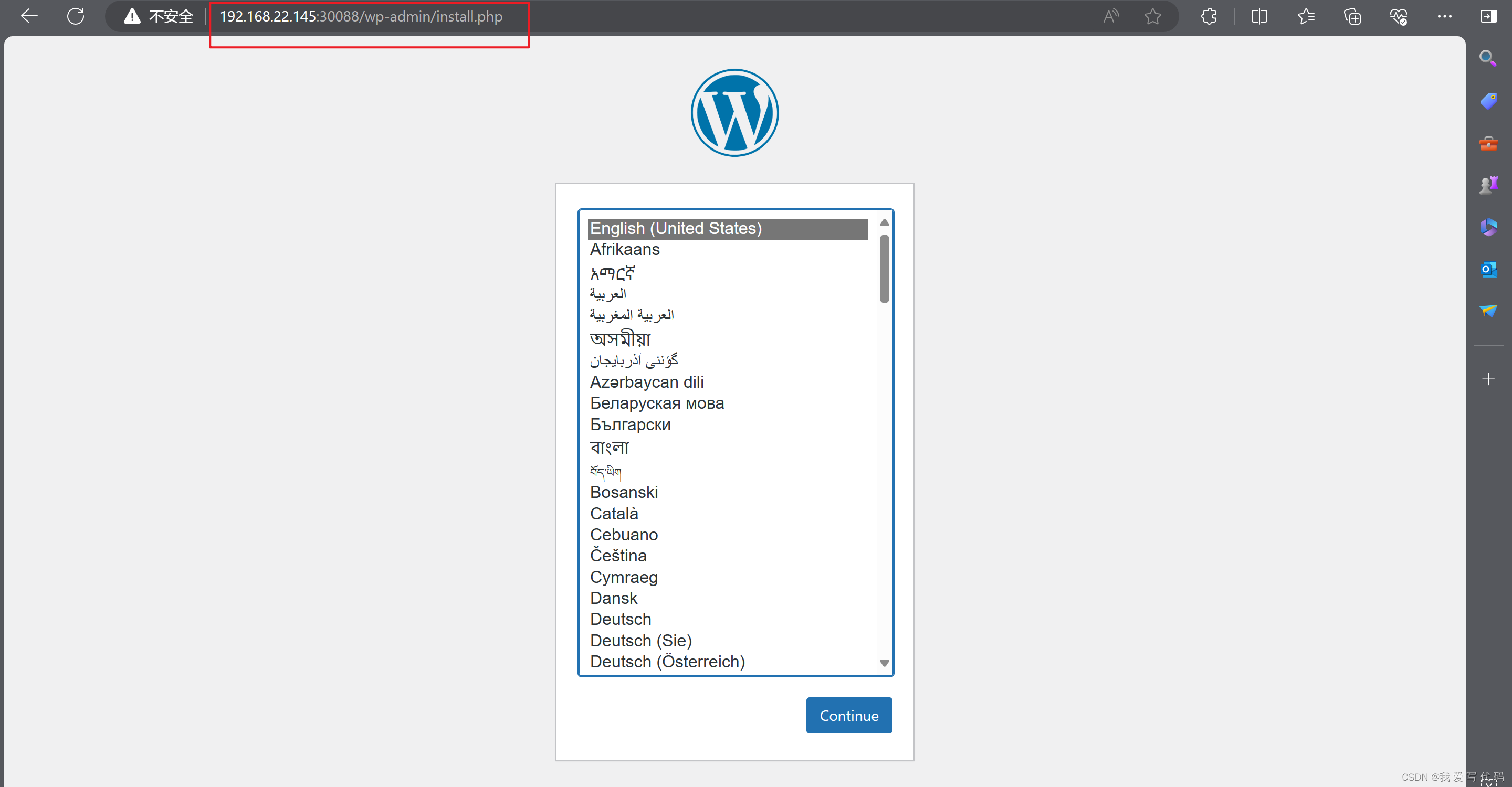 可以通过浏览器访问k8s集群中任意节点ip+30088端口访问,确认wordpress是否正常配置