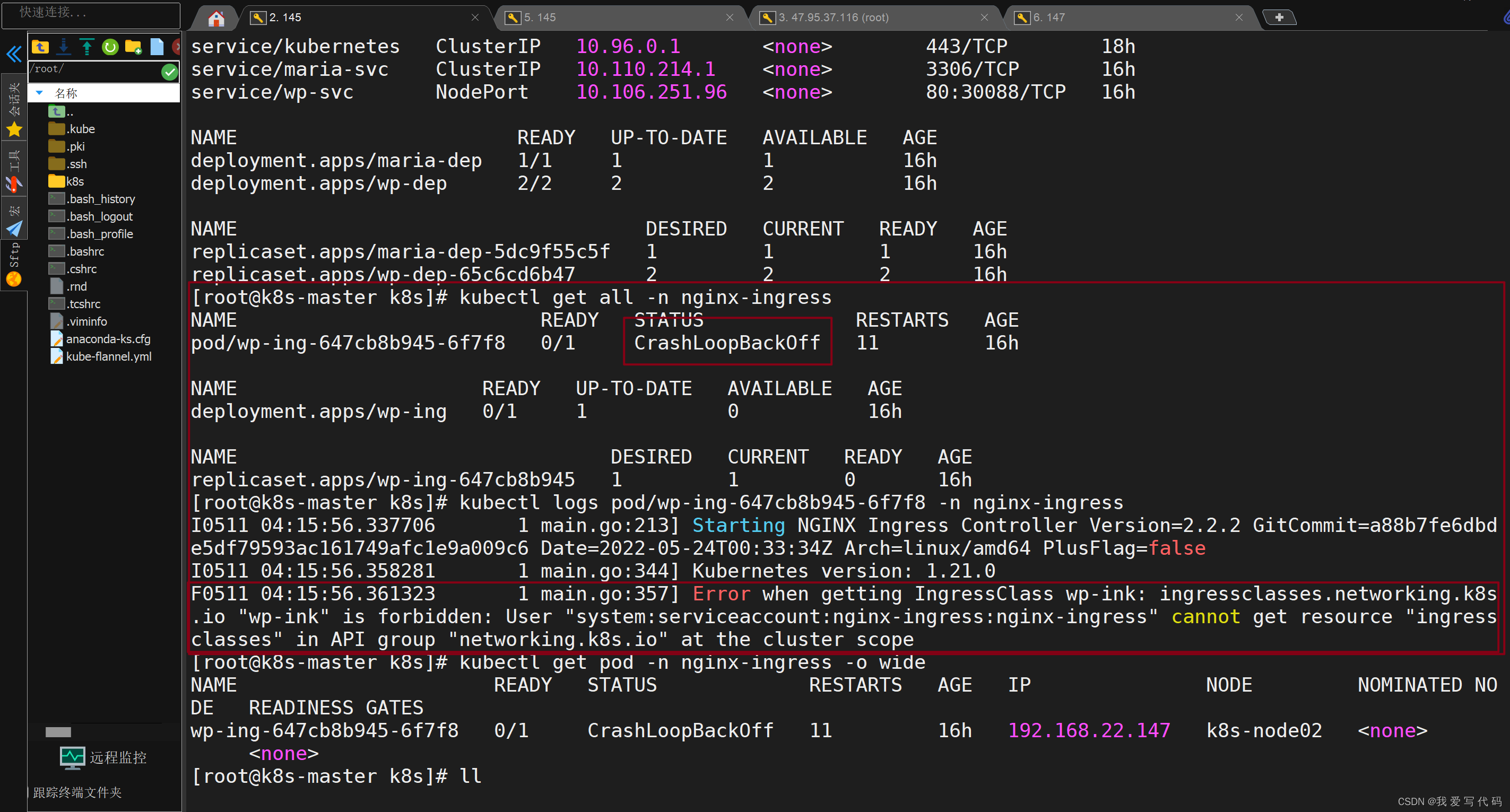 4,逐个运行配置文件,此时发现nginx-ingress容器无法启动