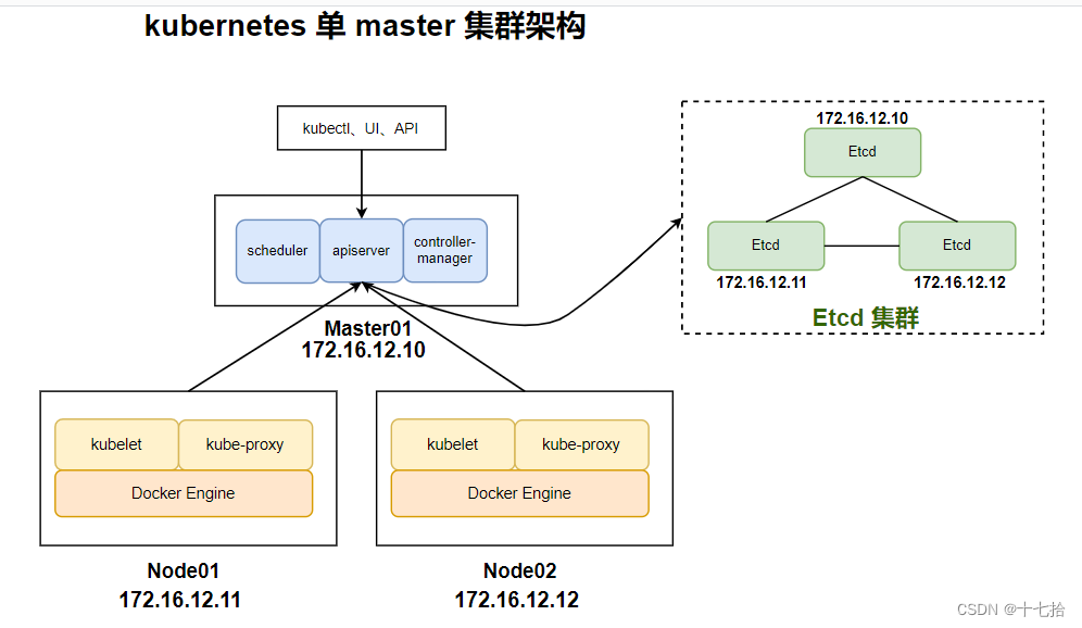 master01 | 172.16.12.10 | kube-apiserver、kube-controller-manager、kube-scheduler、etcd |