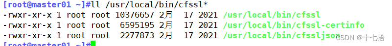 [root@master01 ~]#chmod +x /usr/local/bin/cfssl* #给所有证书签发工具,添加执行权限