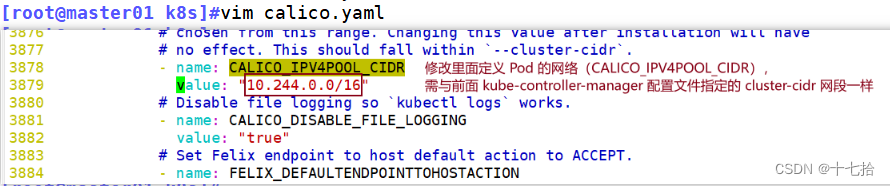 #修改里面定义 Pod 的网络(CALICO_IPV4POOL_CIDR),需与前面 kube-controller-manager 配置文件指定的 cluster-cidr 网段一样