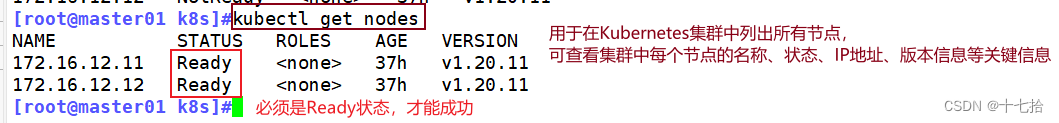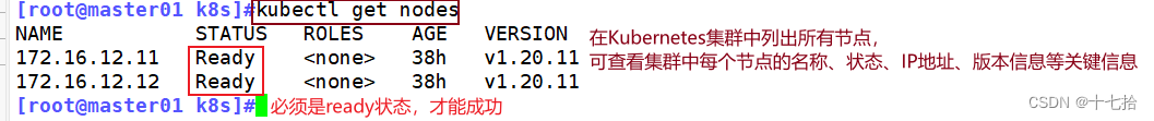 #用于在Kubernetes集群中列出所有节点,可查看集群中每个节点的名称、状态、IP地址、版本信息等关键信息
