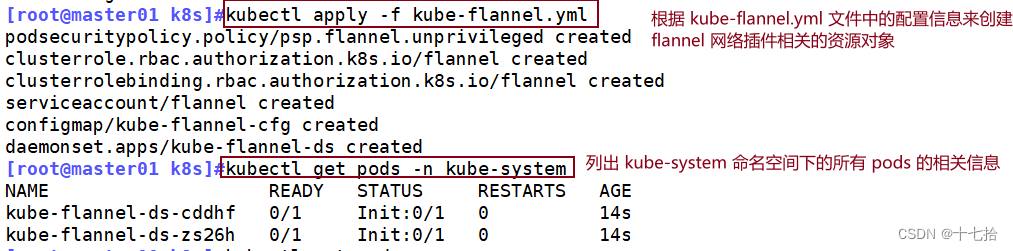 [root@master01 k8s]#kubectl apply -f kube-flannel.yml