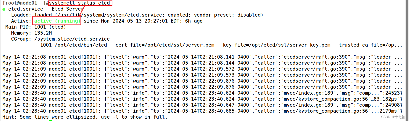 1.1.3 创建存放etcd配置文件,命令文件,证书的目录,并启动etcd服务
