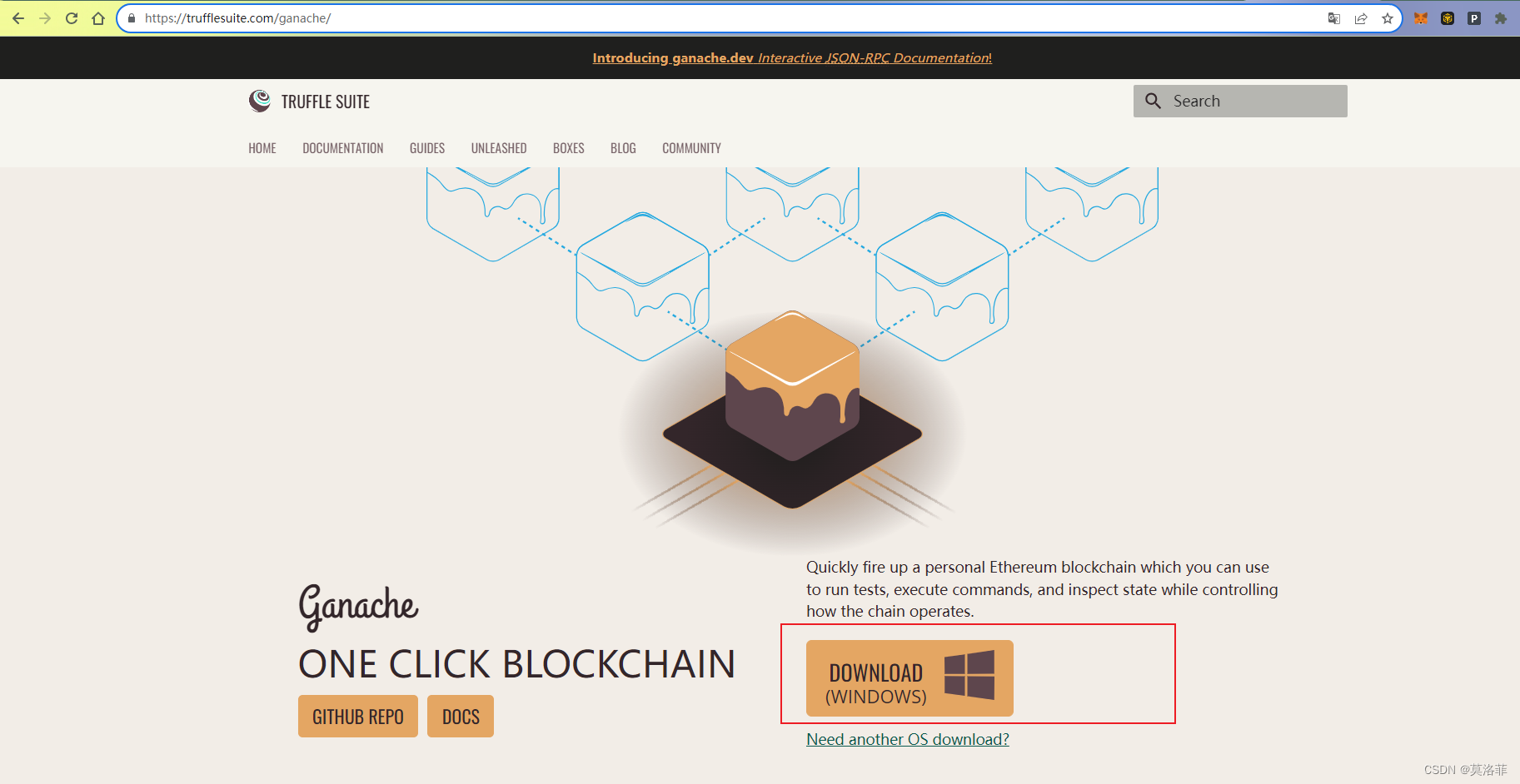 进入官网:https://trufflesuite.com/ganache/,我们下载对应的电脑系统的版本,下载安装包后,直接安装即可