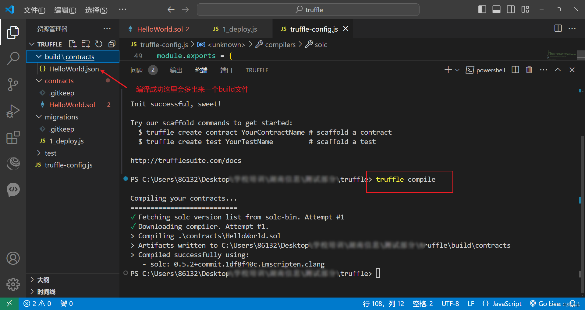 2.接下来我们来将下面的HelloWorld合约放到我们工程中