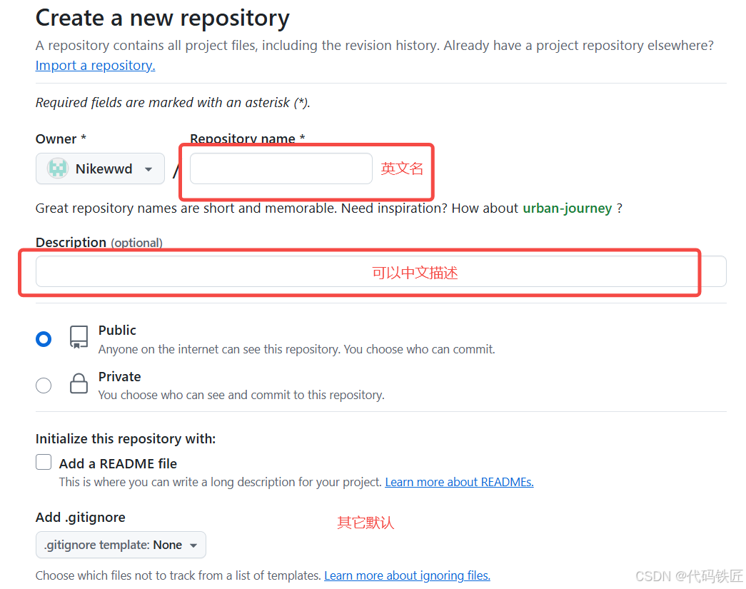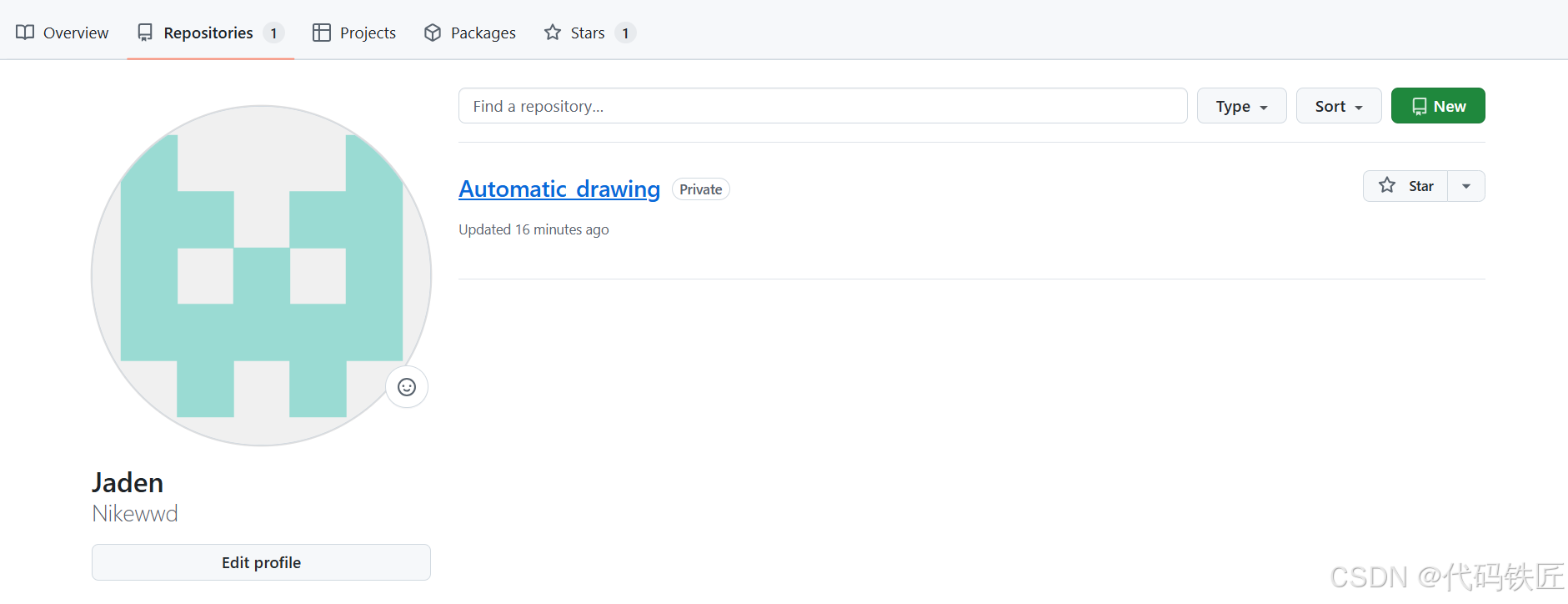 2、注册完成后需要一些简单的设置,创建仓库 new