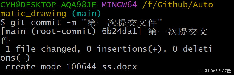然后在输入:git commit -m “描述内容,备注” ,输入之后出现以上情况: