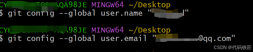 设置一些账号名,邮箱,(name最好和GitHub上边的一样,email是一定要是注册GitHub的那个邮箱地址)