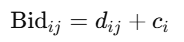 任务竞标 每个机器人根据自身状态计算竞标价格: