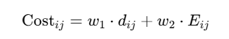 其中 dij 为机器人 i 到任务 j 的距离,Eij 为机器人完成任务所需的能耗。