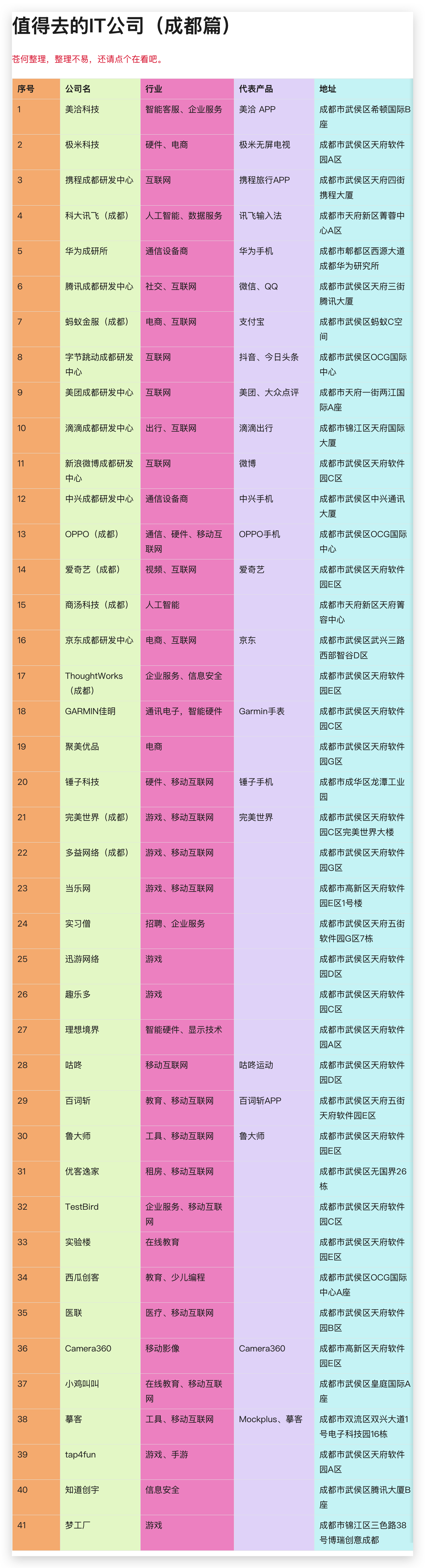 好啦,关于成都值得去的 IT 公司,你有什么补充的呢?欢迎评论区讨论。