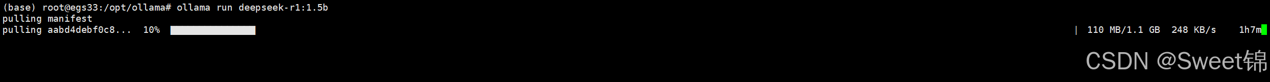 注:输入此命令后,ollama会自动下载模型并运行,等待完成即可。下载过程如图所示: