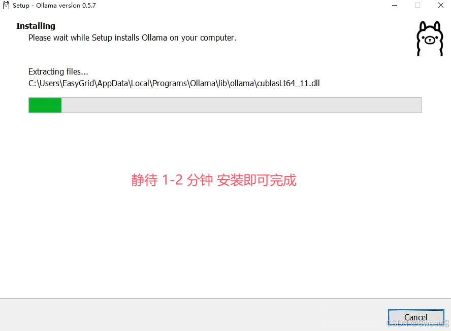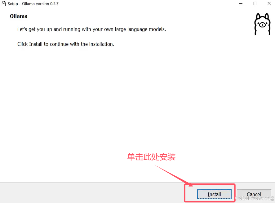 Ollama Windows版本,基本上是一键安装,非常简单,安装完毕后,右小角会出现Ollama小图标。