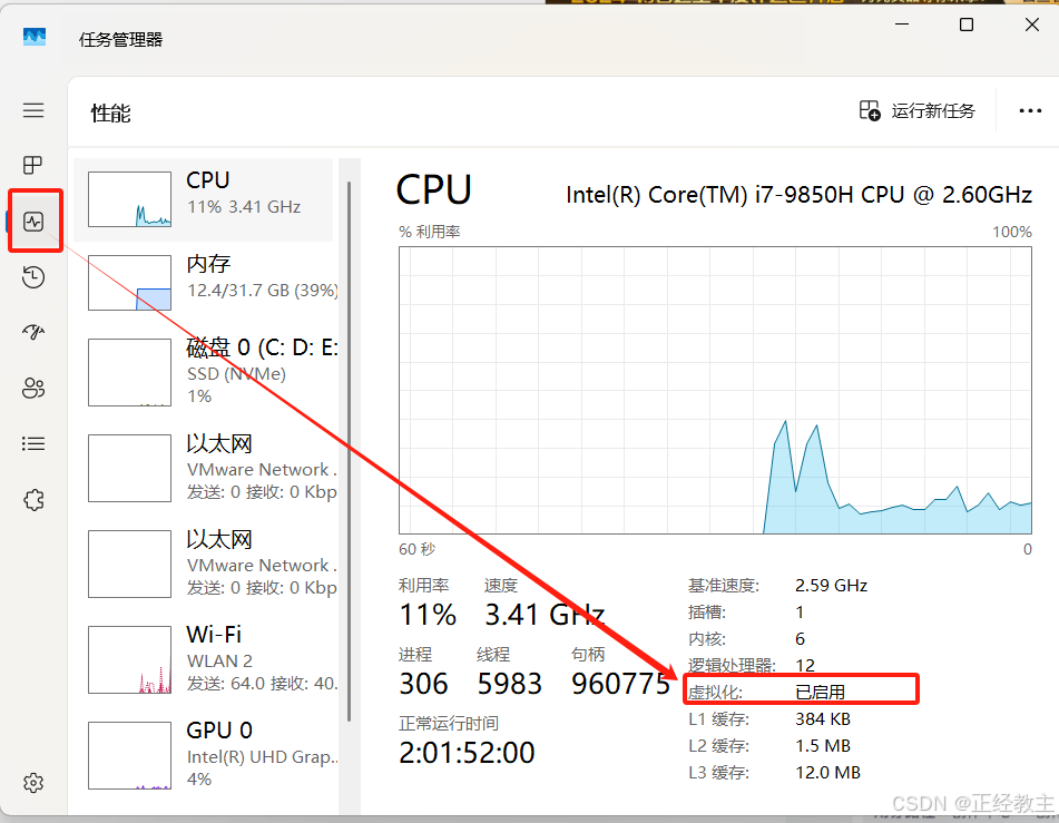 然后,进入系统,再检查一下虚拟化是否开启了。