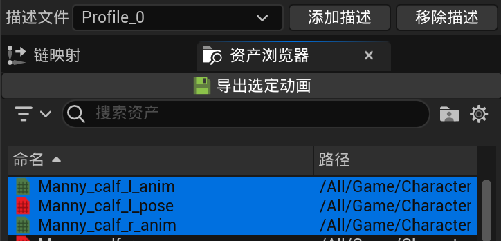 选择动画资产后可导出