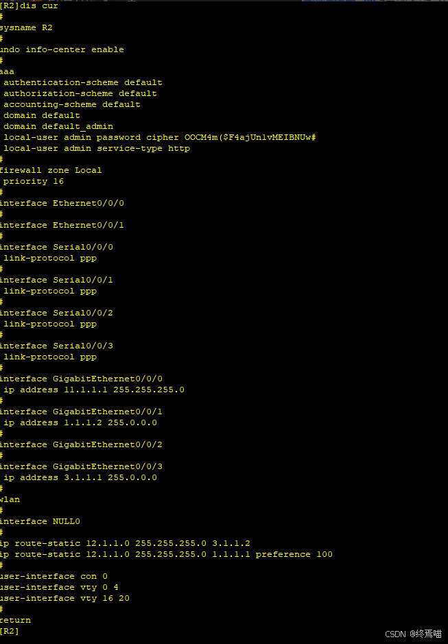 [R2]ip route static 12.1.1.0 24 1.1.1.1 prefenrence 100
