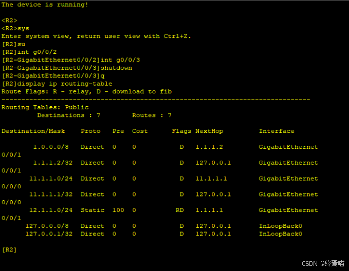 [R2-GigabitEthernet0/0/3]int g0/0/0