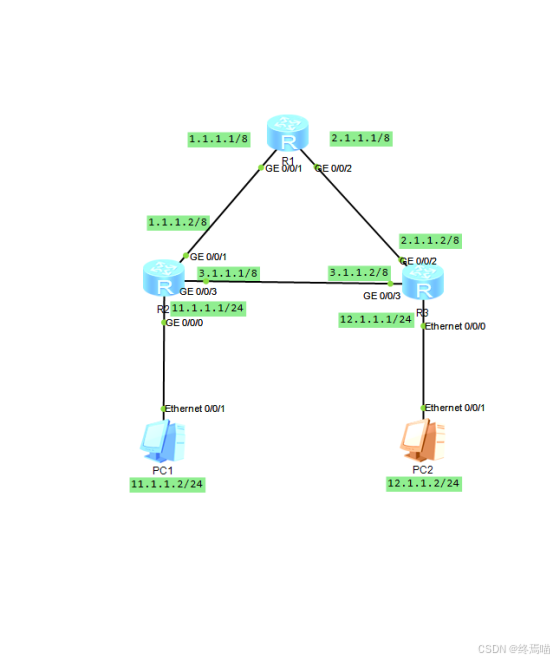 [R3-GigabitEthernet0/0/0]ip address 12.1.1.1 24