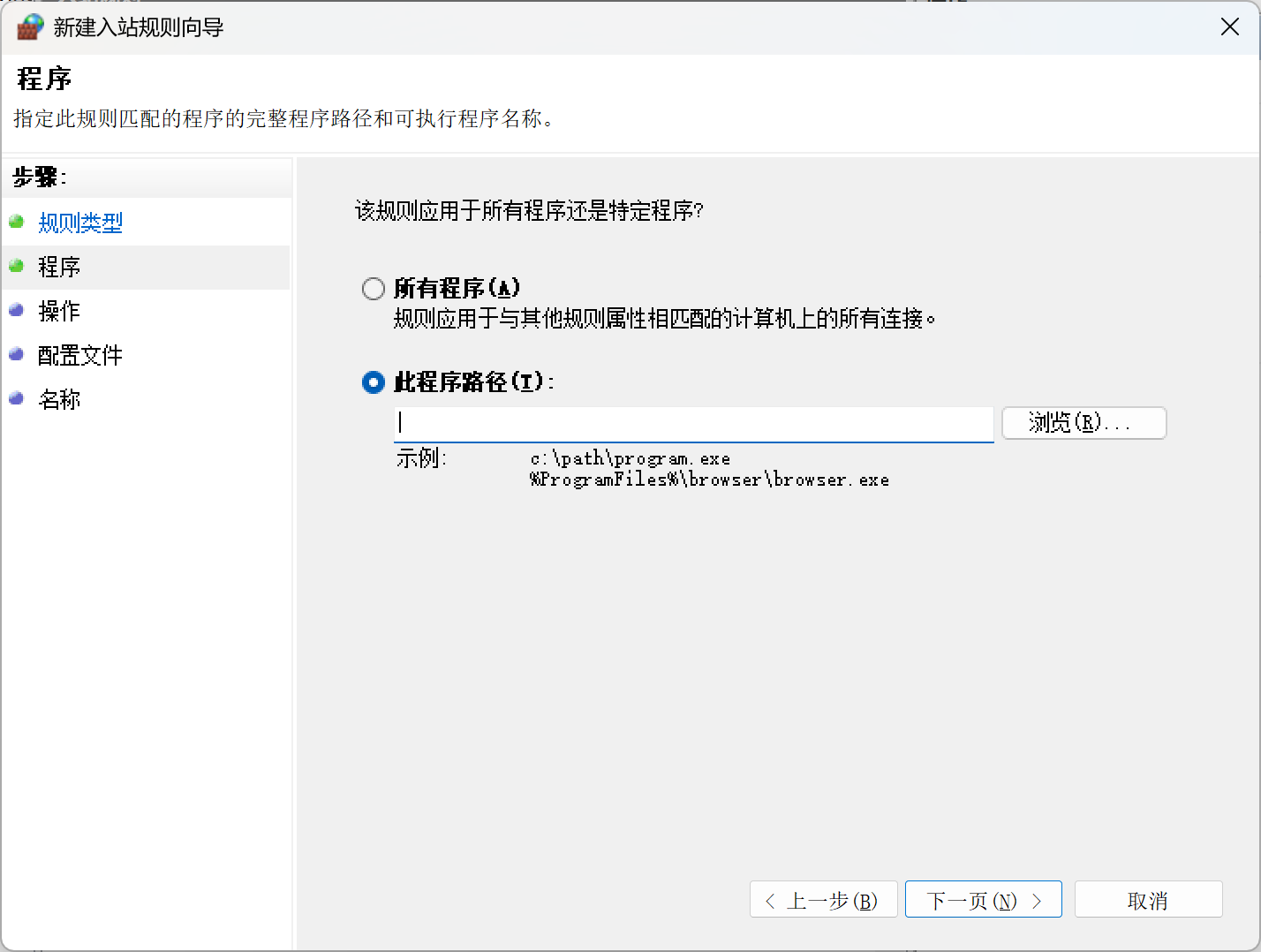 (5)点击“下一页”,将此程序路径设置为:你的adobe软件的可执行文件(.exe)的存放路径。如果不知道,可以右击桌面快捷方式——>查看文件存放位置