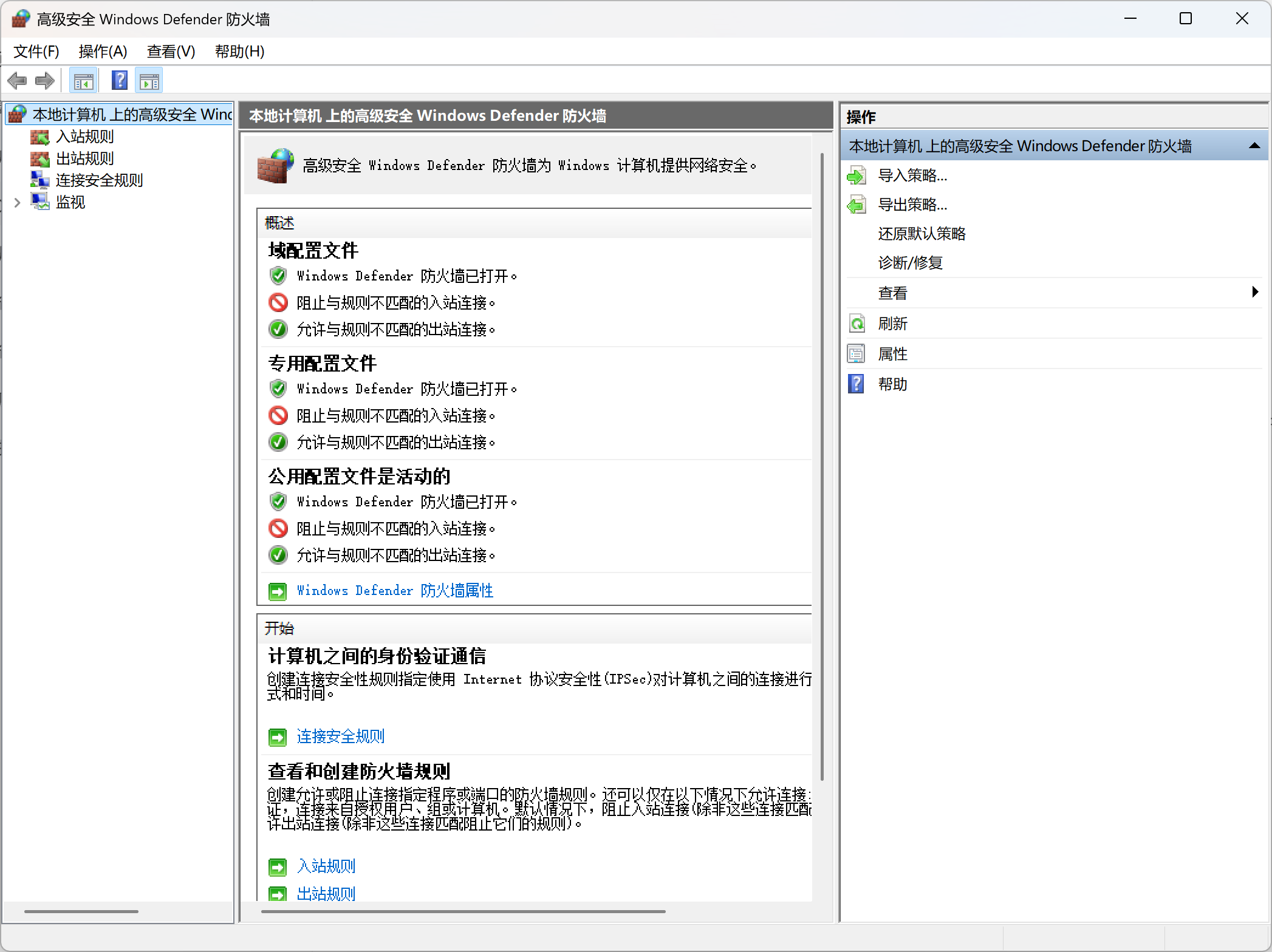 (3)进入以后,观察左上角有两个选项:“入站规则”和“出站规则”