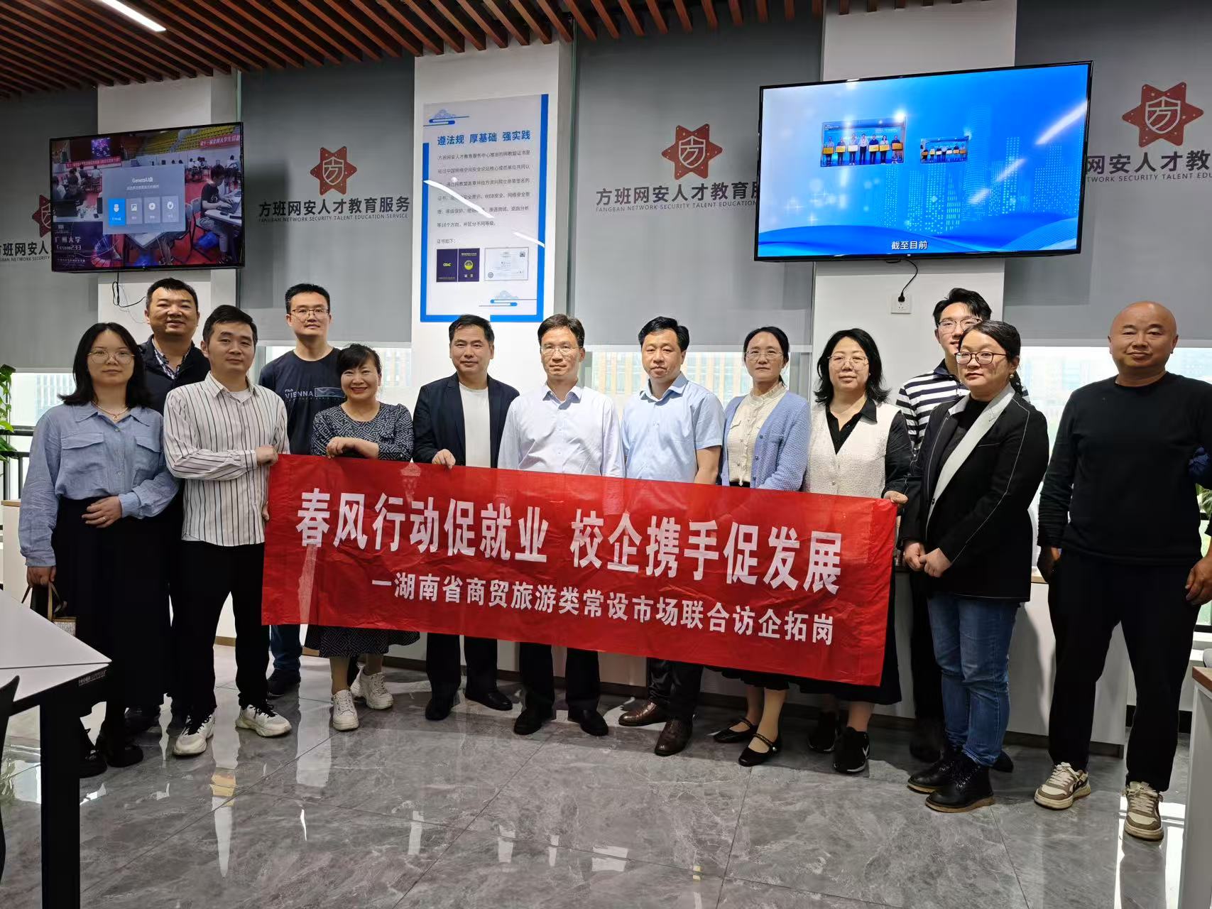 2025年4月30日,湖南商务职业技术学院副校长姜华斌率队前往国家网络安全产业园(长沙),与方班网安人才教育服务中心(总部基地)及奇安星城、深信服、麒麟软件、湖南文盾信息等企业代表开展校企合作交流研讨会。