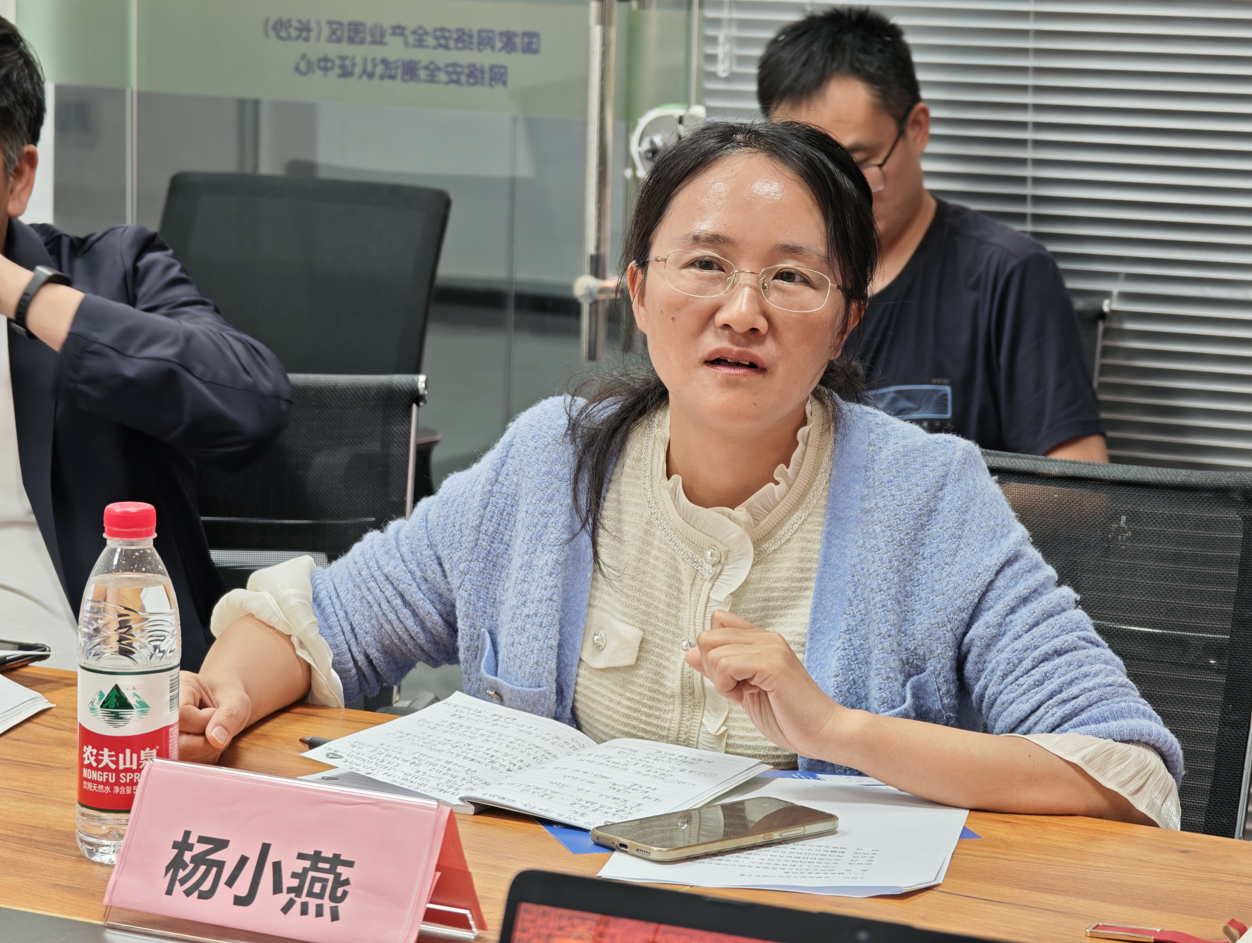 湖南商务职业技术学院发展规划与合作交流处处长唐柳荷随后阐述了此行目的,她表示,希望通过与企业的深入交流,精准对接产业需求,在人才培养、课程建设、实践基地等方面探索更多合作路径,推动学校网络安全相关专业建设与产业发展同频共振。