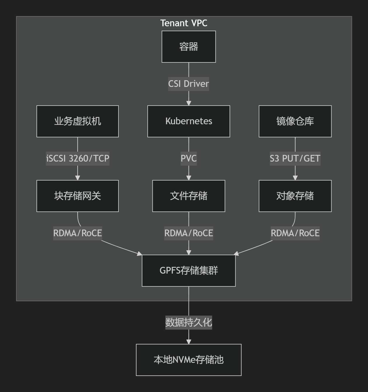 - 存储节点:NVMe SSD+100Gbps RDMA网络