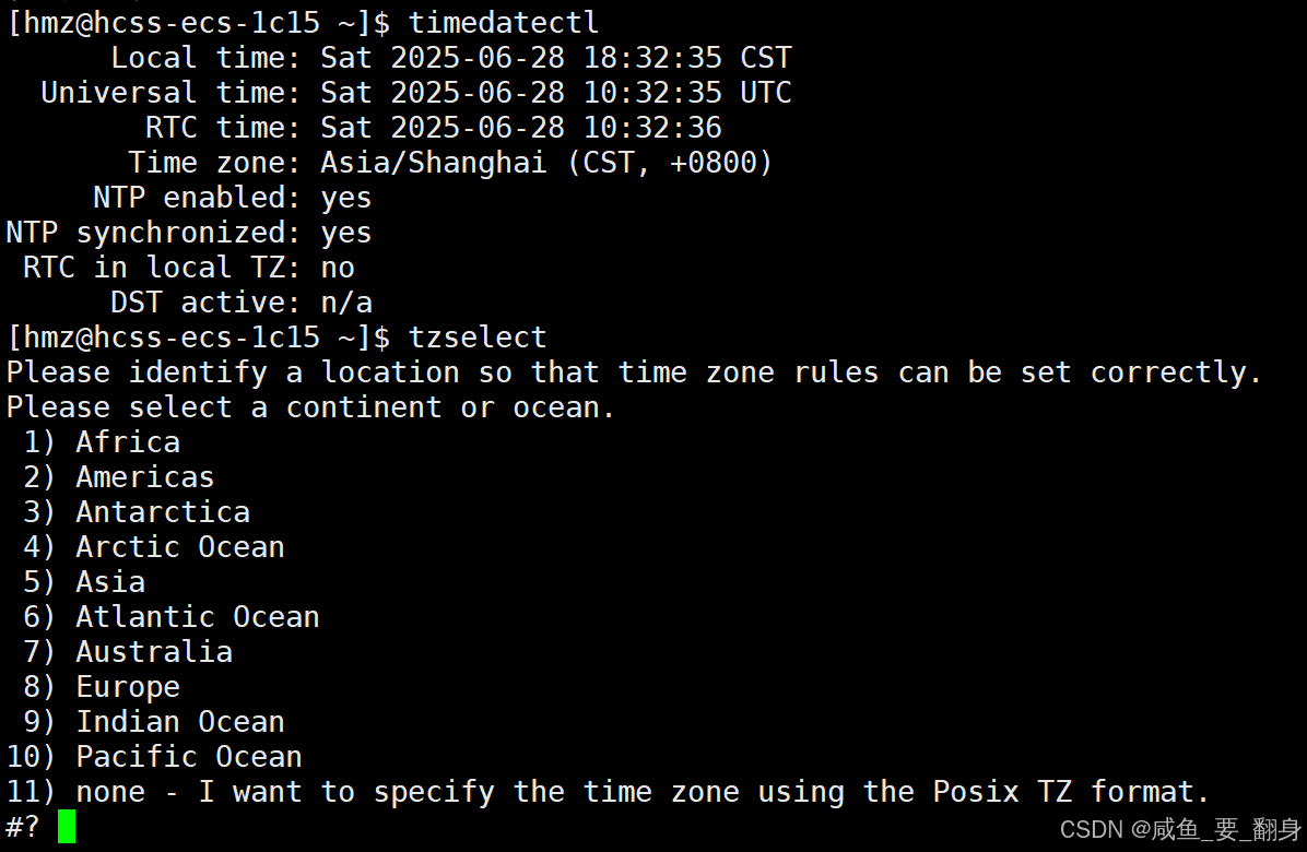 timedatectl或tzselect)。