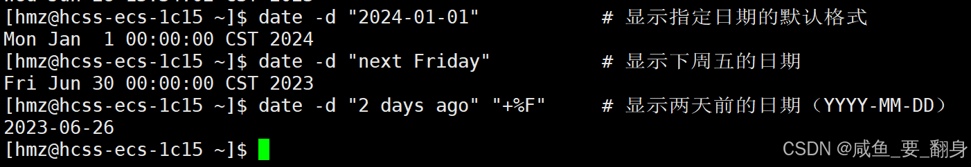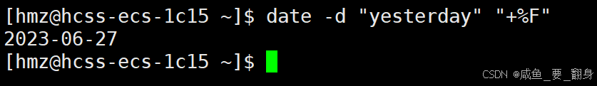 date -d "2 days ago" "+%F" # 显示两天前的日期(YYYY-MM-DD)