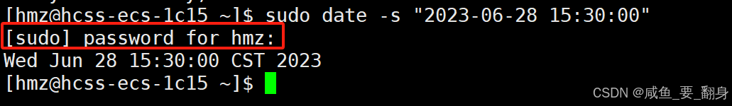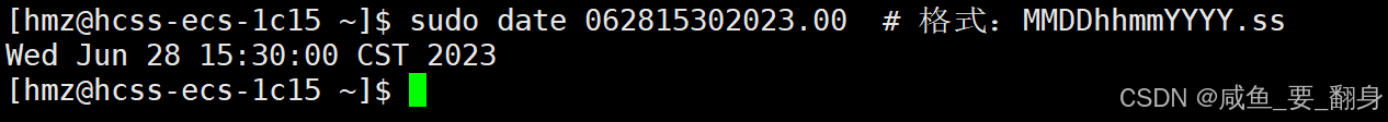 sudo date 062815302023.00 # 格式:MMDDhhmmYYYY.ss