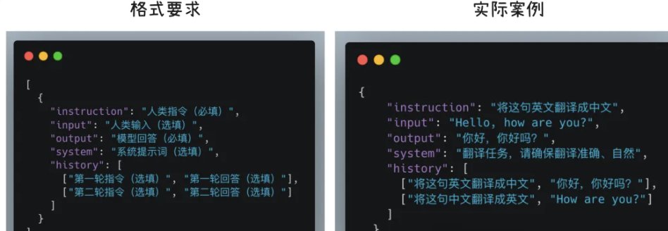 指令微调的数据集制作相对简单,要执行的任务一般很明确,有比较明确的答案了,比如想要微调模型在翻译方面的能力,那就用现成的翻译 API 来构造数据集;想要微调模型在数学解题方面的能力,其实也有现成的题目 + 答案可以用来构造。所以指令微调场景的数据集一般不太难做,主要进行一些格式转换的工作即可。
