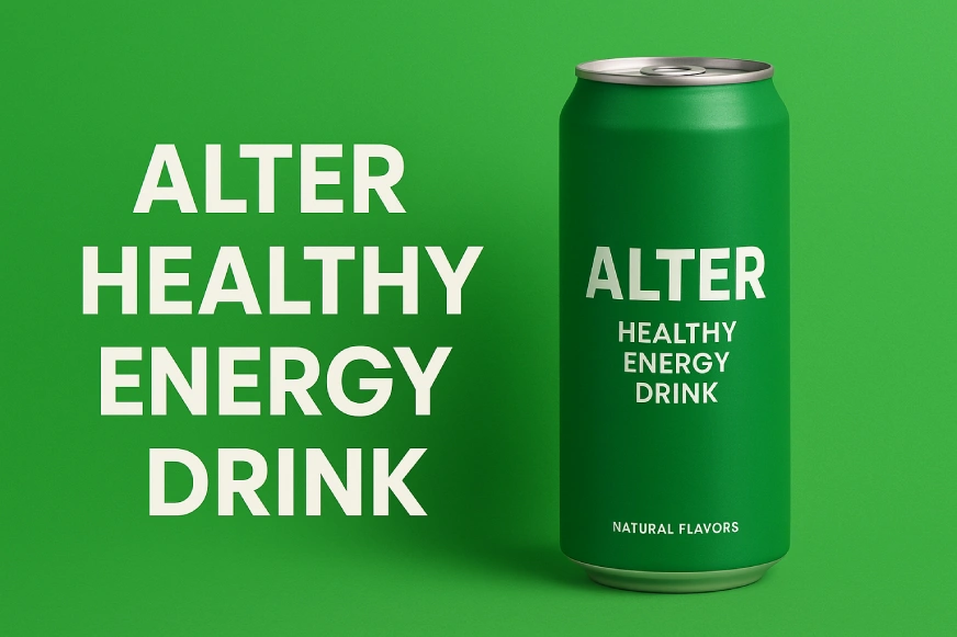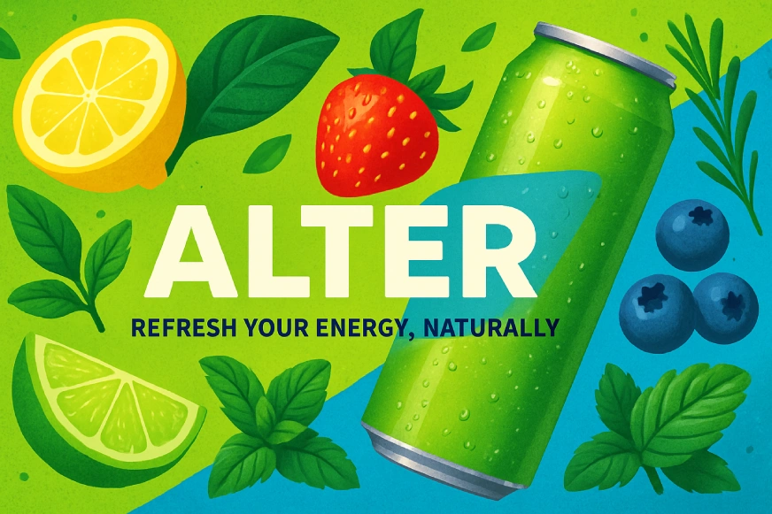 提示:设计一张社交媒体宣传海报,用于推广一款名为“Alter”的健康能量饮料。