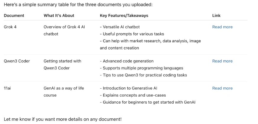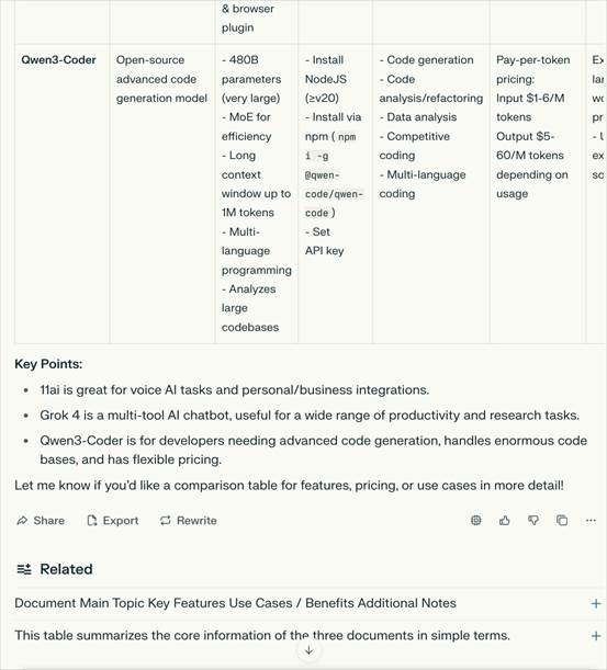 我给两个聊天机器人各提供了三份文档,并要求以表格形式给出总结。结果,Perplexity制作了一份涵盖该工具多个方面的详细表格,而ChatGPT则生成了一个更简洁、范围更有限的版本。ChatGPT的输出虽易于阅读,但其中一份文档的总结不准确;Perplexity的表格内容更为全面,且以简洁形式呈现了信息。
