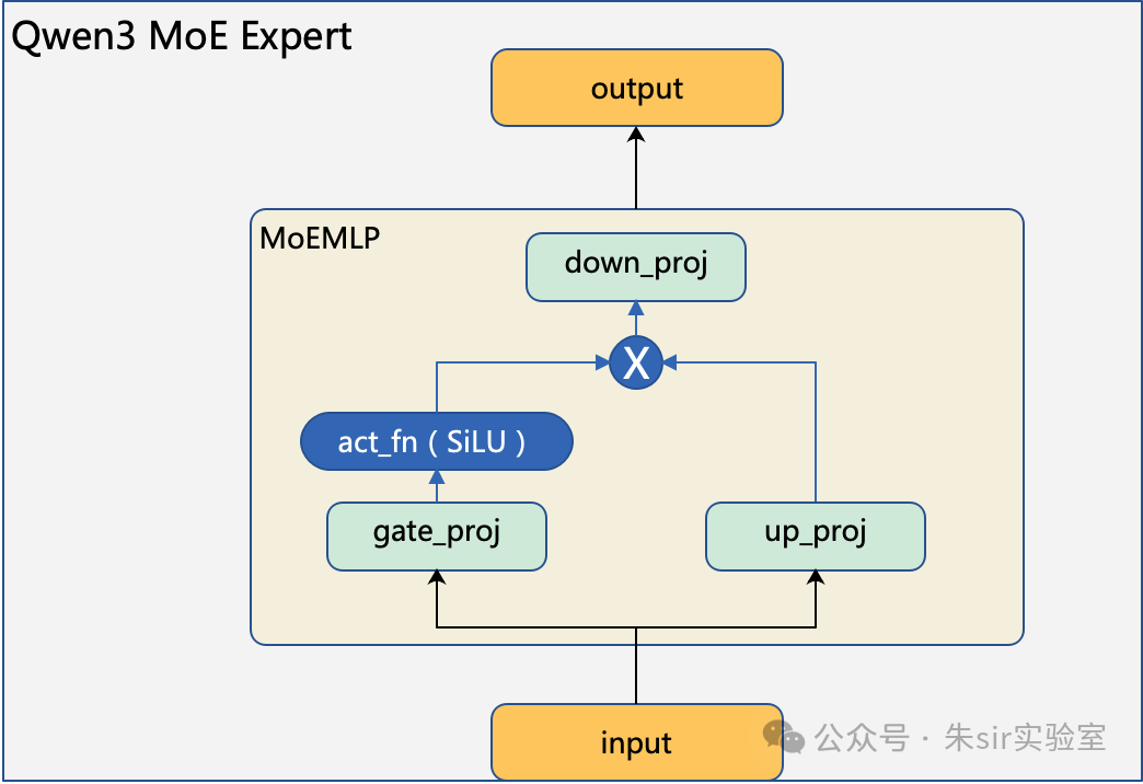 这个Expert结构与Qwen3稠密模型中的MLP结构完全一致,即