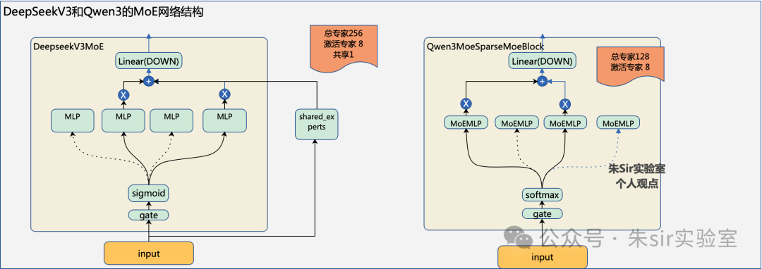 按照transformers库中的代码,大致整理了下DeepSeekV3和Qwen3中的MoE实现: