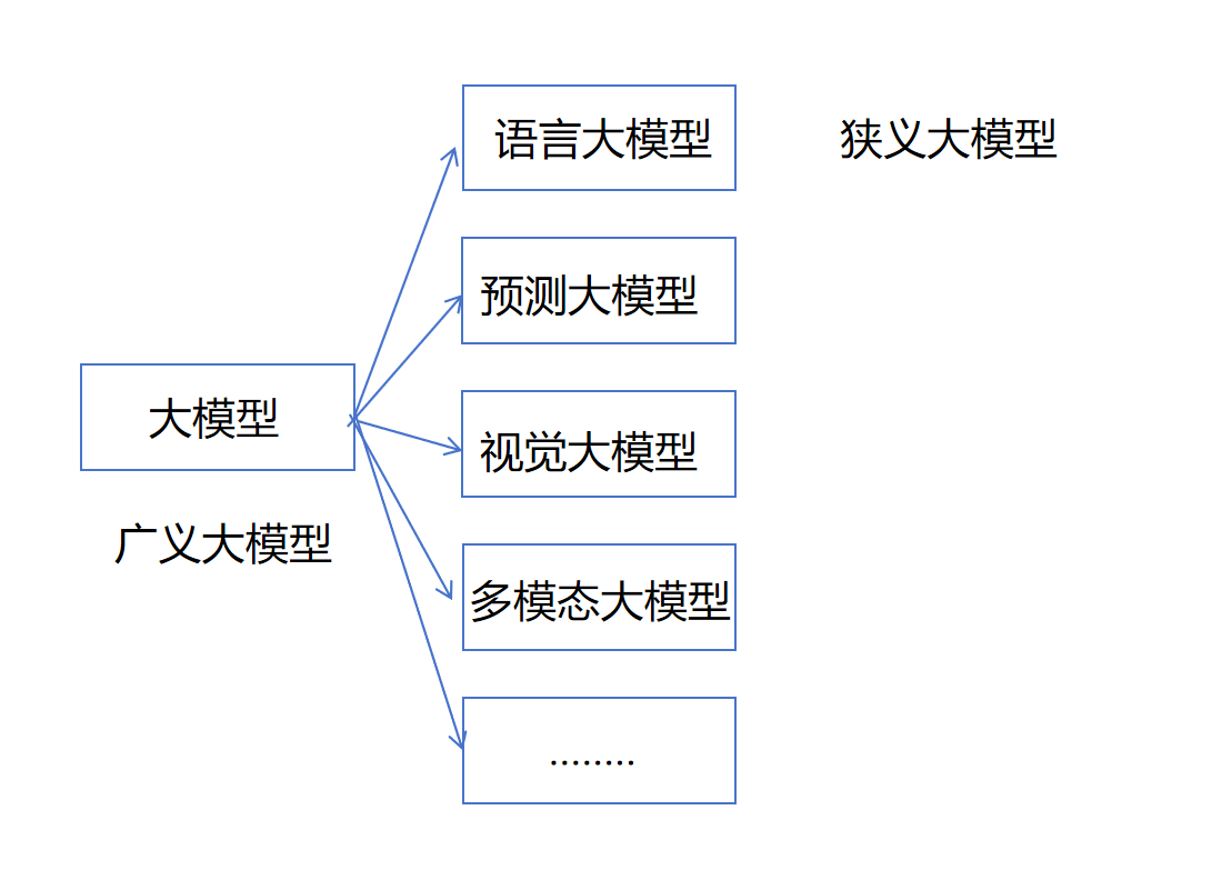 狭义大模型:仅指语言大模型(LLM)。