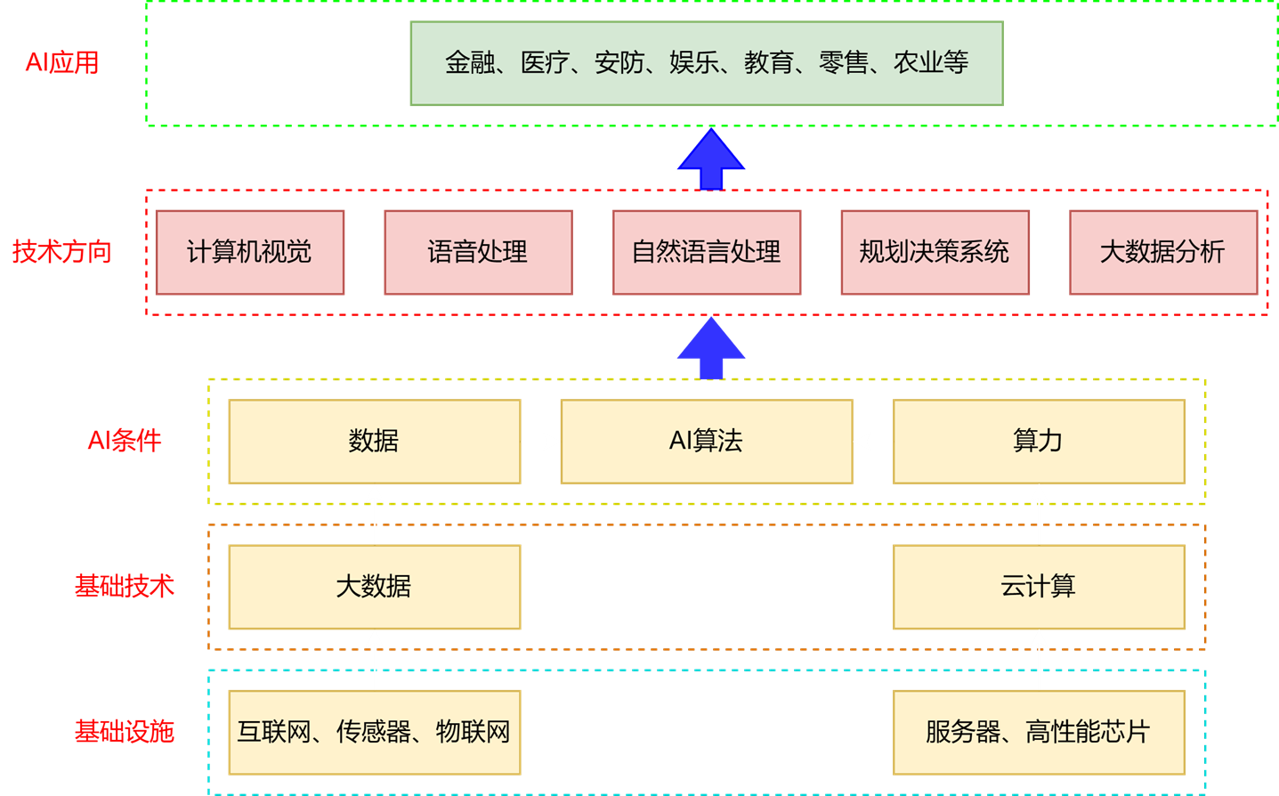 NLP(说话,听)、CV(眼睛)、自动驾驶、机器人(肢体动作)、大模型