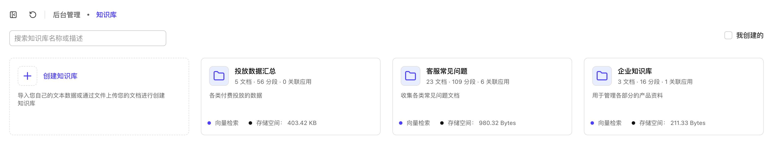 在 FastbuildAI 中,你可以创建多个「知识库」来管理不同的内容。