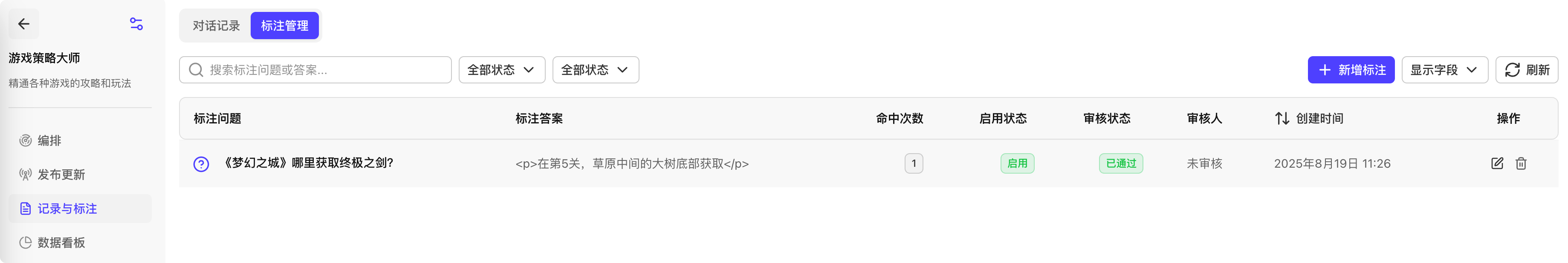 支持标注对话,对常见问题提供一个标准回复,无需调用大模型,更快更且更省资源。