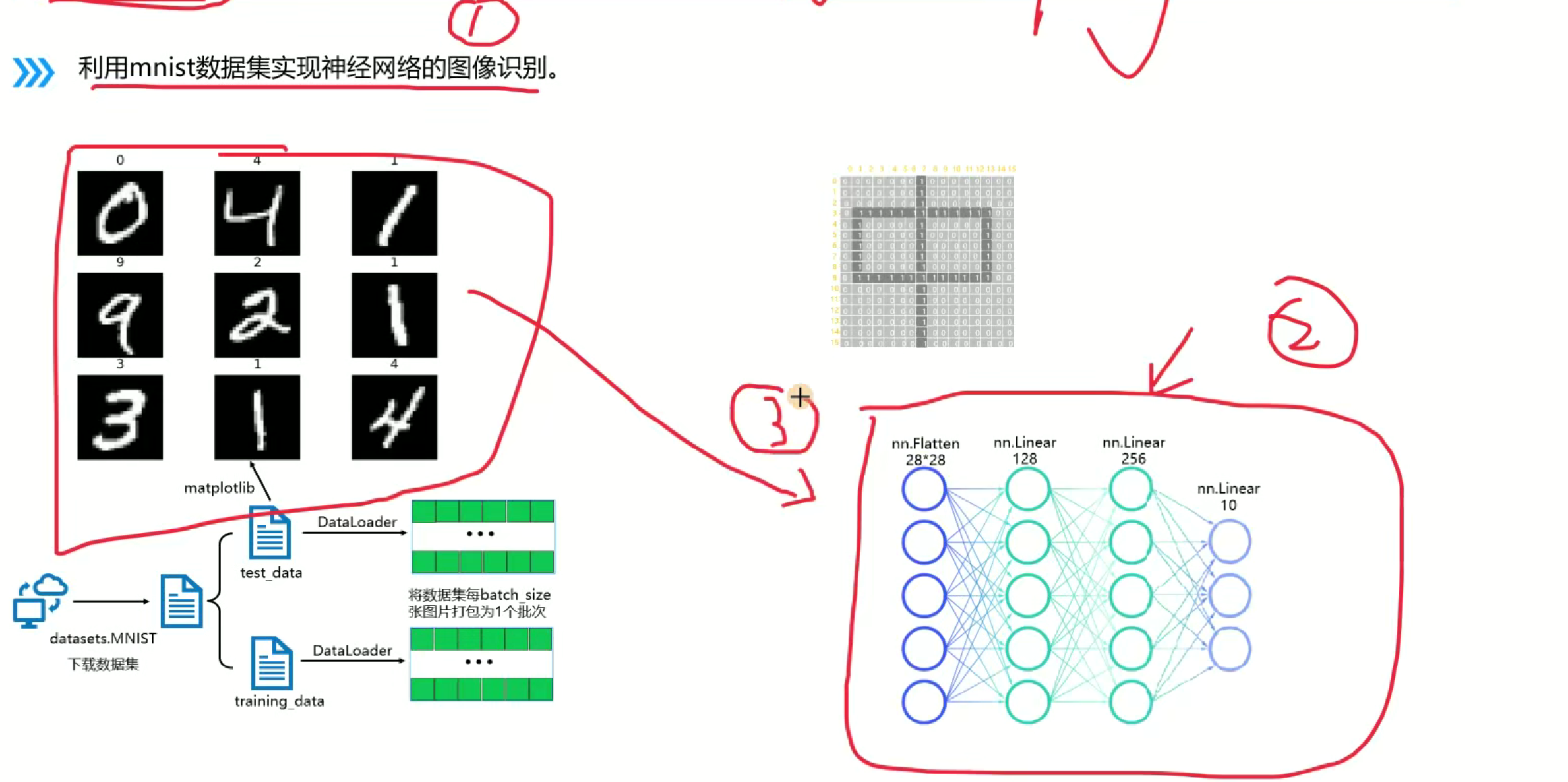 本文介绍了PyTorch深度学习框架的基本使用流程。首先对比了CPU和GPU的架构差异,重点讲解了GPU显存参数的意义。接着详细说明了PyTorch安装步骤,包括CUDA环境配置和版本选择。然后以MNIST手写数字识别为例,演示了数据集的下载、加载和可视化方法,解释了DataLoader的分批处理机制。最后介绍了神经网络模型的搭建过程,展示了一个包含输入层、隐藏层和输出层的全连接网络实现,并说明了