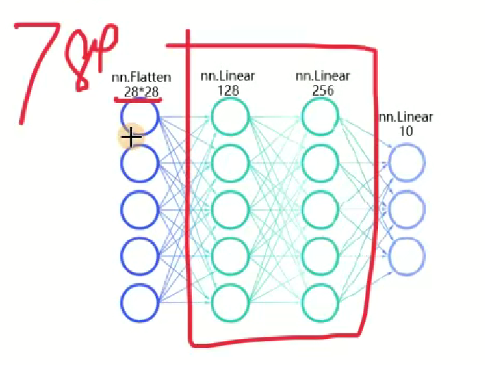 self.hidden1 = nn.Linear(28*28, 128)#第1个参数:有多少个神经元传入进来,第2个参数:有多少个数据传出去前一层神经元的个数,当前本