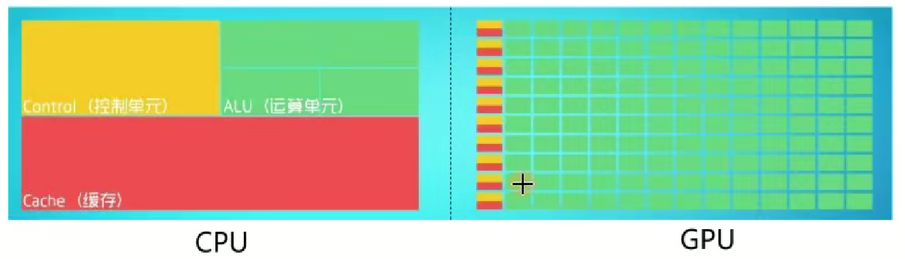 GPU 又称图像处理器,是一种专门在个人电脑等一些移动设备上做图像和图形相关运算工作的微处理器。可以形象地理解为 90% 的 ALU (运算单元),5% 的 Control (控制单元)、5% 的 Cache (缓存)。