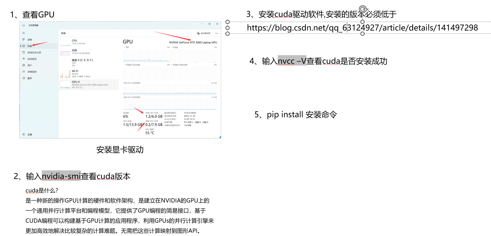 print(f"Using {device} device")#字符串的格式化。 CUDA驱动软件的功能: pytorch能够去执行cuda的命令, cuda通过GPU指令集去控制GPU