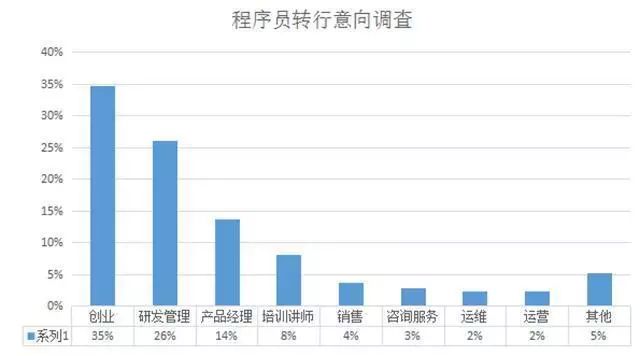 很显然,程序员们其实更加青睐留在IT行业里,研发管理、运维、运营三者加在一起的比例高达44%。