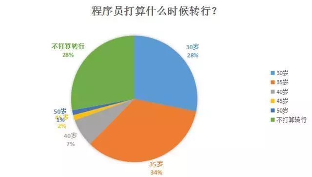 程序员的意向转行年龄有逐渐后延的趋势,一是程序员的薪资很难被其他岗位超越,二则是城市生活成本逐渐提高,生活压力较大,不敢轻易转行。