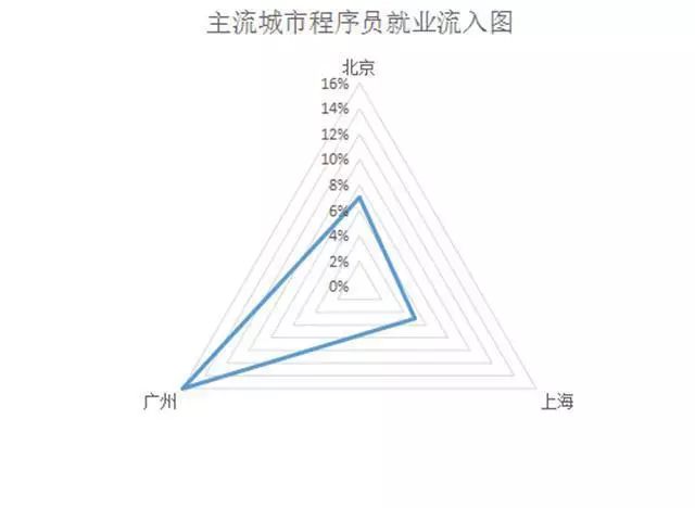 其实对大多数走出家门,选择在北上广做程序员的人来讲,除了高薪的诱惑,同时也存在着城市本身的吸引力,即便是转行,也会有相当大比例的一部分人选择留在一线城市。根据主流城市程序员就业流入图,广州以15.9%的流入率成为了程序员最喜欢的城市。