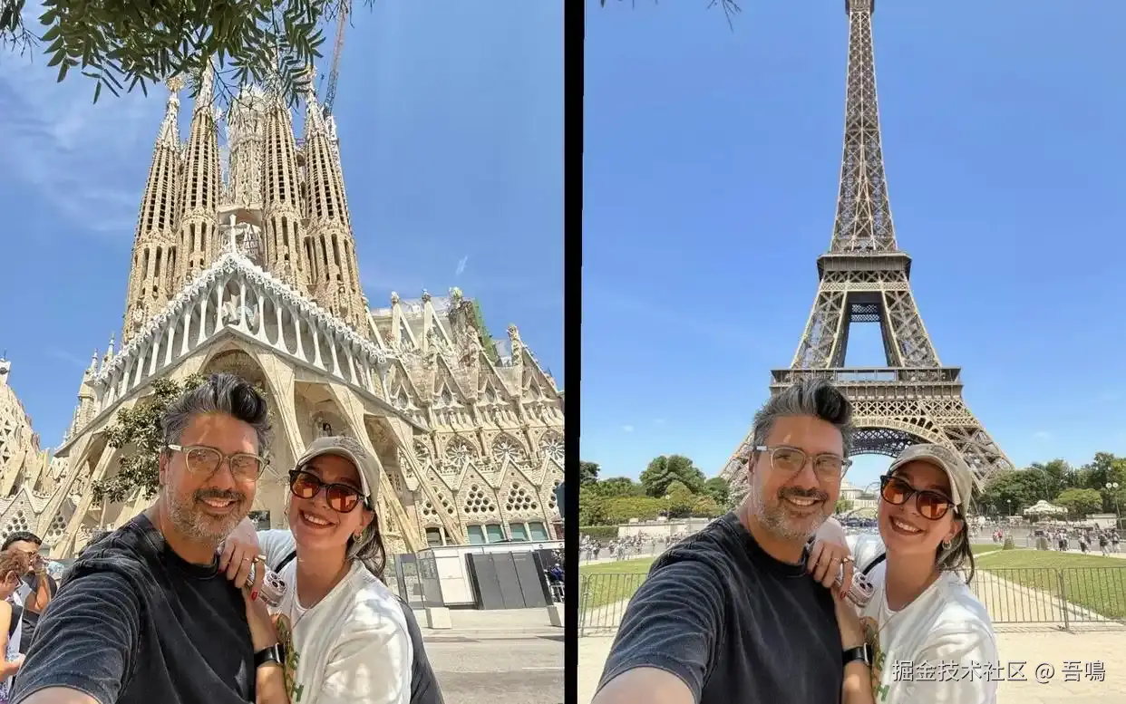 还有很多其他惊艳的效果图,比如生活照、旅游照一键更换背景,从大合照中指定两个人生成合照等。