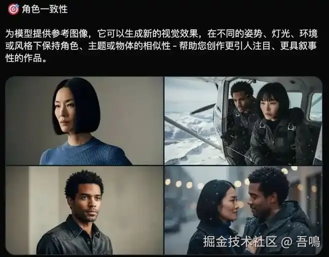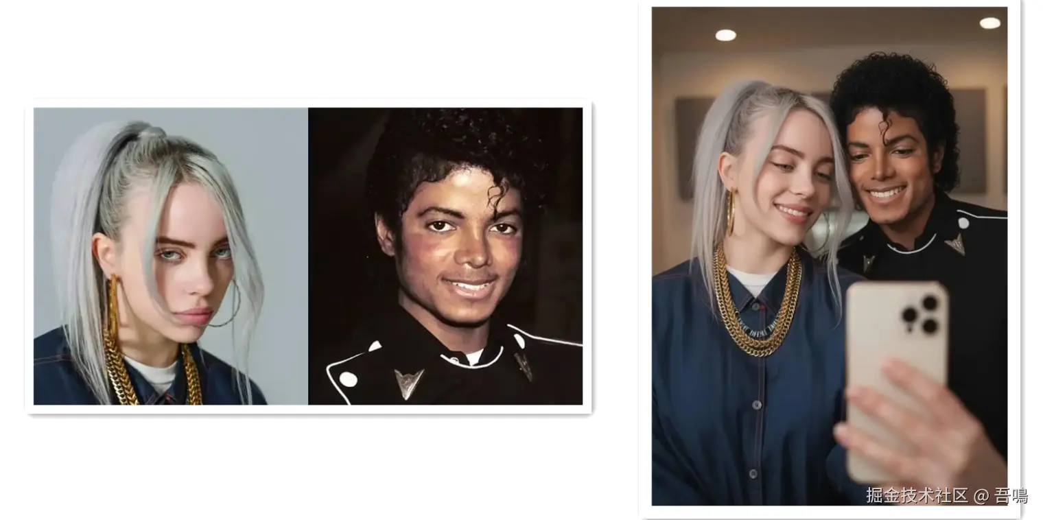 人物一致性的处理效果也是很好,如果你丢个它两张人像照片,使用提示词描述这两张照片的人物分别在不同的场景下做不一样的事情,它产出的不同场景下的人物是与原照片中的人物非常的吻合的,不会像其他的图像处理模型生成的不同场景中的人物有着天壤之别。